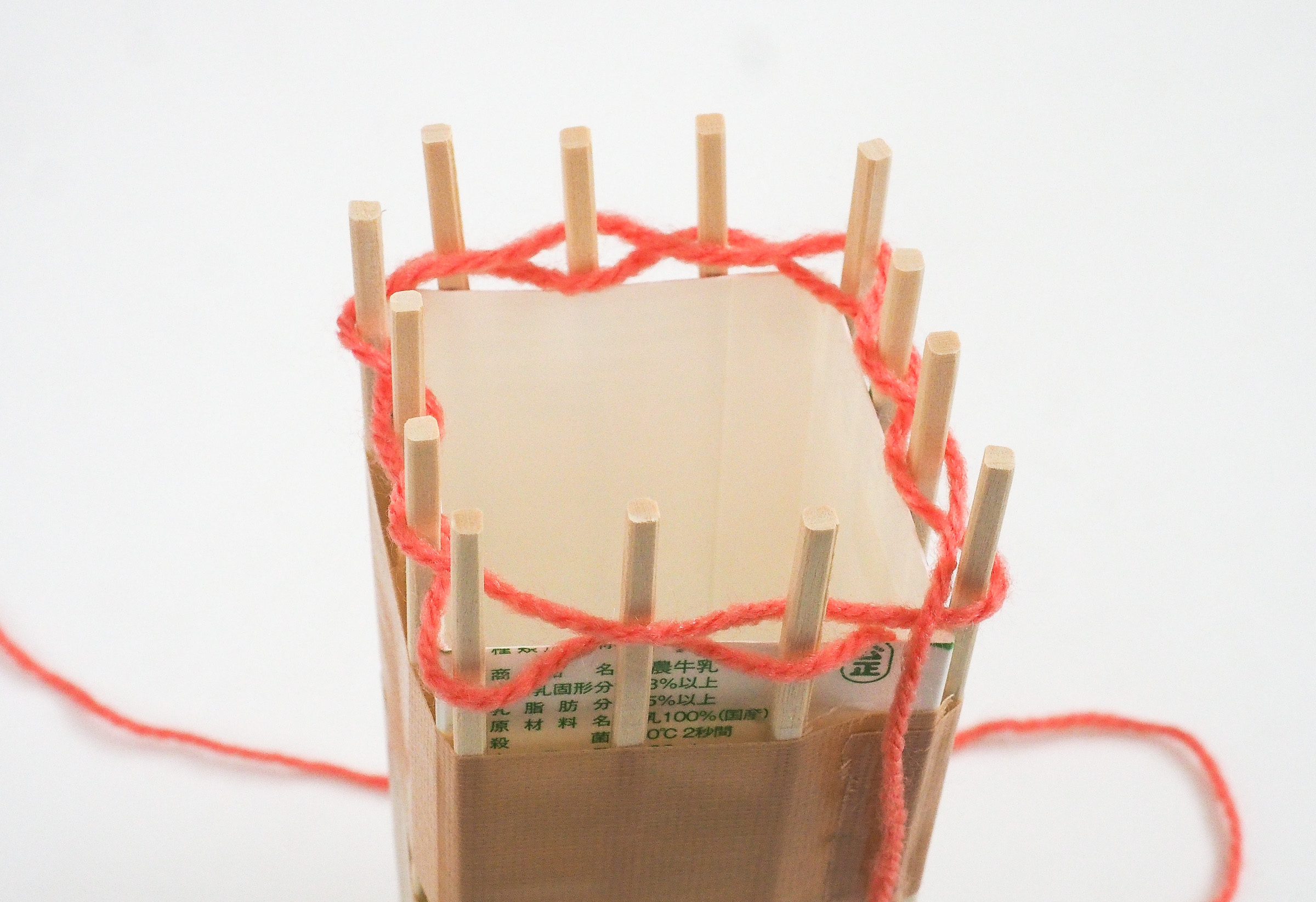 ちなみに、牛乳パック以外でも筒状であればいろいろなものを編み器にできます。